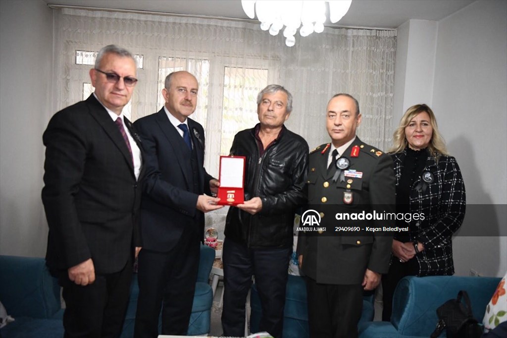Keşan’da  yaşayan Kıbrıs gazisi Orhan Sevim’e Milli Mücadele madalyası ve beratı takdim edildi.