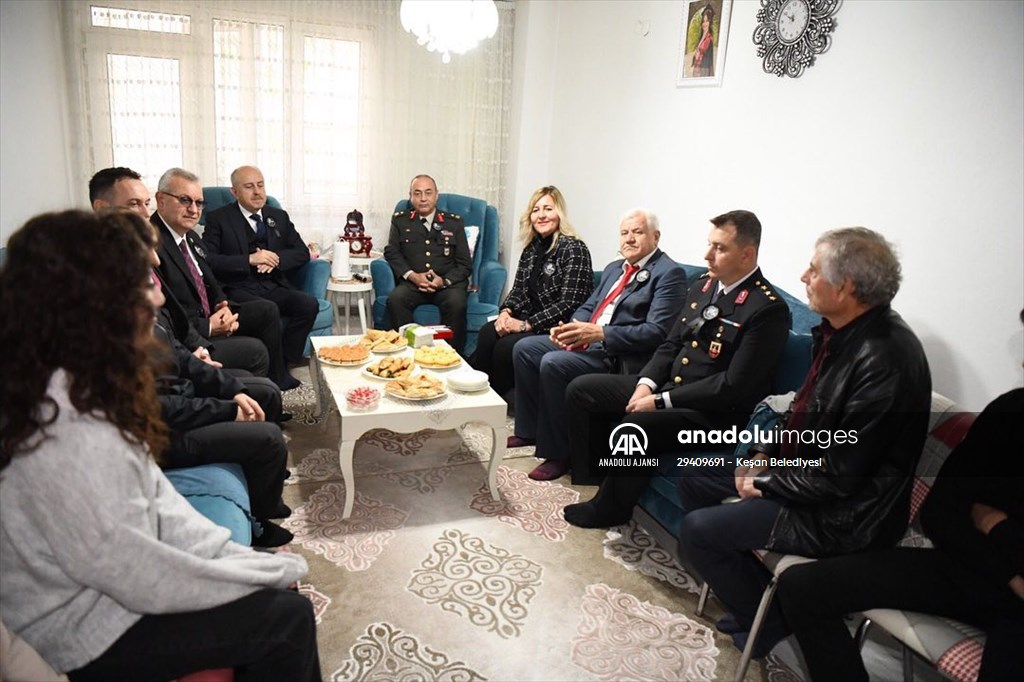 Keşan Belediyesi’nden yapılan açıklamaya göre; Kaymakam Cemalettin Yılmaz, Belediye Başkanı Mustafa Helvacıoğlu ve Garnizon Komutanı Tuğgeneral Mustafa Özay, Sevim‘i evinde ziyaret etti.