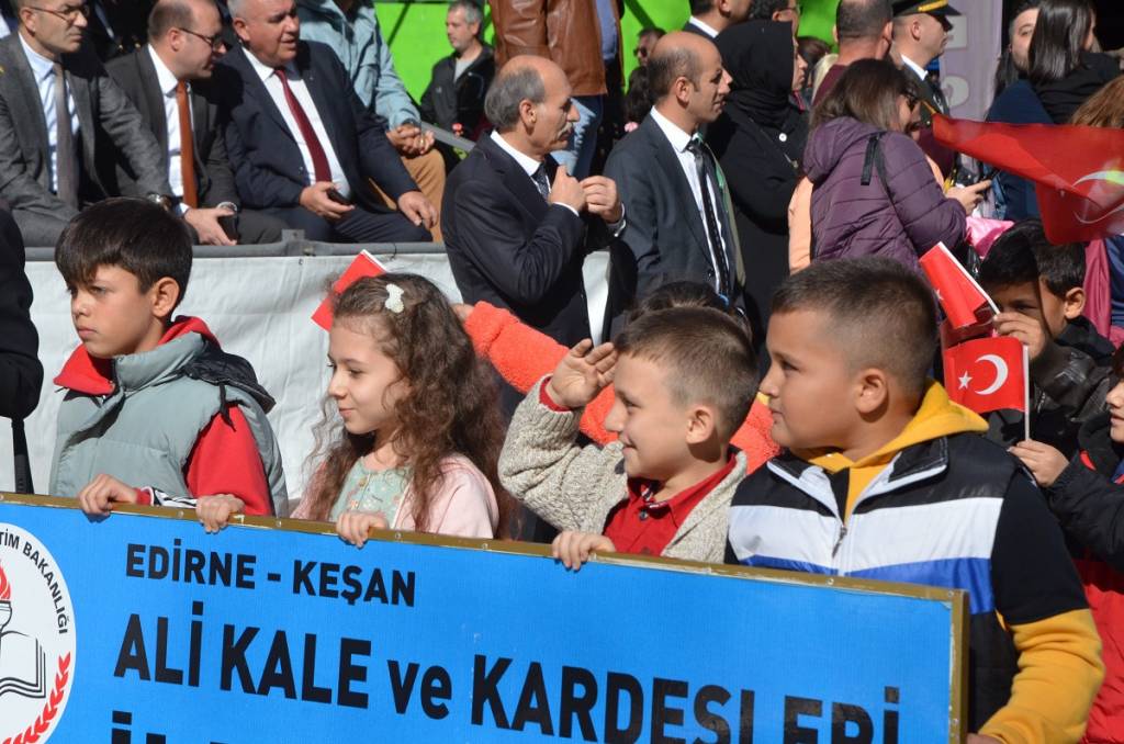 Program, Mehmet Gemici Cennet Parkı önündeki nefes yolunda düzenlenen törenle devam etti. Tören; saat 11.00’de Keşan Kaymakamı Cemalettin Yılmaz, 4. Mekanize Piyade Tugay Komutanı Tuğgeneral Mustafa Özay, Keşan Belediye Başkanı Mustafa Helvacıoğlu tarafından halkın bayramının kutlanmasının ardından, saygı duruşunda bulunulması ve İstiklal Marşı’nın söylenmesi ile başladı. Törene katılım yoğun oldu.