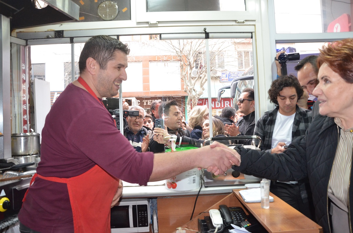 Saat 17.15 sıralarında Demirciler Caddesi’nde partilerin yoğun kalabalığında karşılanan Akşener, esnafları ziyaretinde Keşan Belediye başkan adayı Zafer Sarıkeçe’ye destek istedi.